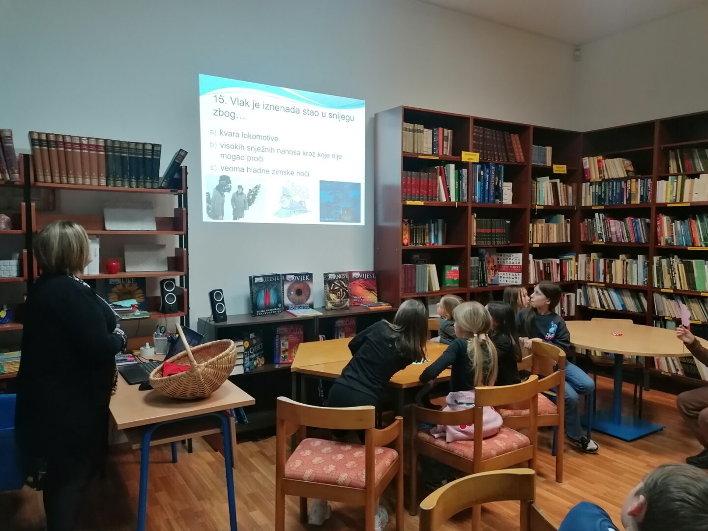 Klasik dječje književnosti, roman koji nikada neće dosaditi, priča koja odrasle vraća u djetinjstvo, a djeci usađuje ljubav prema čitanju… Vlak u snijegu Mate Lovraka razveselio je učenike 3.d razreda pa su s užitkom u školskoj knjižnici pogledali legendarni film iz daleke 1976.g. i odigrali kviz o lektiri koji je pripremila naša školska knjižničarka Helena Barić Karajković. Za zavidno znanje pokazano u kvizu svi su nagrađeni bombonima a pobjednička grupa i edukativnom igračkom za cijeli razred. Zapjevali su i Himnu zadrugara koju su naučili na Glazbenoj kulturi te ilustrirali naslovnicu ovog popularnog lektirnog naslova. Kako sažeti dojmove o ovom prekrasnom satu? Red smijeha, red ozbiljnog razgovora, žustra rasprava, kreativan i opušten način učenja, ali i njegovanja čitanja. A zaključak? Lektira je zakon!